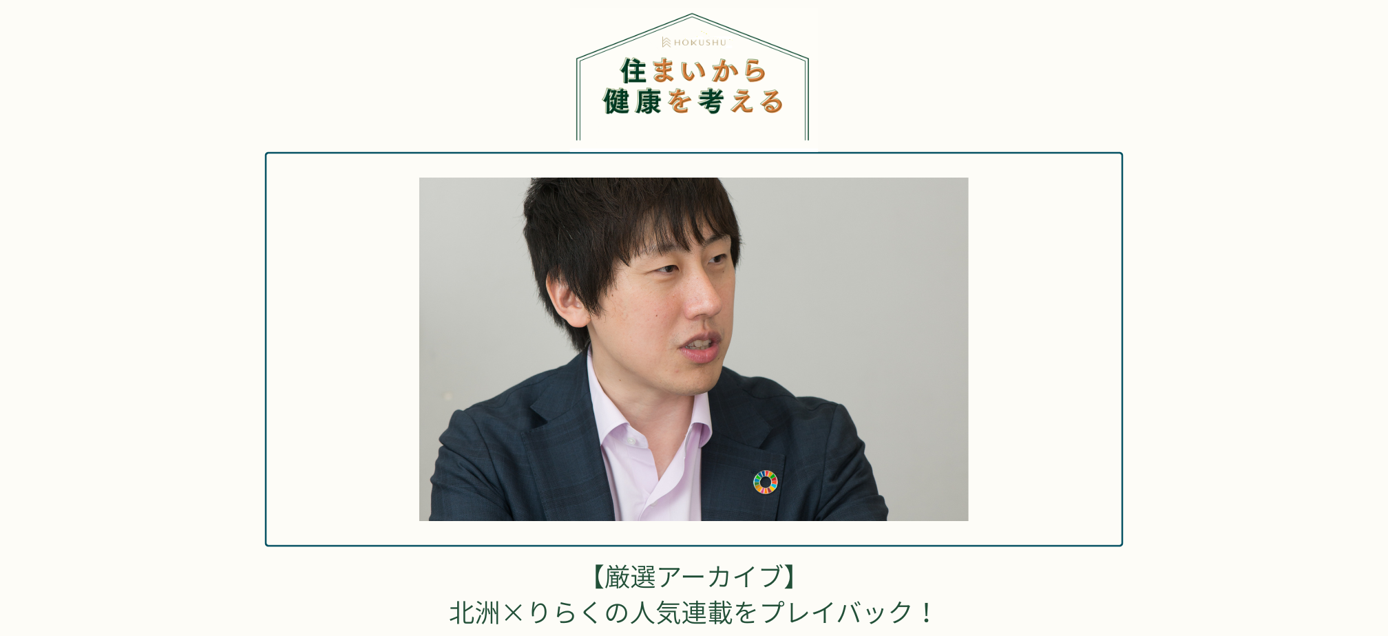 株式会社北洲 ×大人の情報誌「りらく」コラボ企画でお届けした「住まいから健康を考える」( 2019年〜2020年)。全12回にわたる連載の中から、特に反響の大きかった回を厳選してご紹介します。今だからこそ改めて読み直したい、時代に左右されない「住まいと健康の深い関わり」をぜひご覧ください。