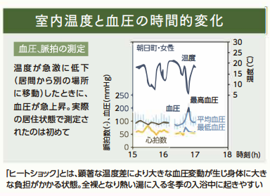 そこで1982年から、住環境と脳卒中の関連について山形大学医学部と共同で研究を進めました。山形県の3つの町で調べた結果、家の中の温度差が大きいこと(ヒートショック)が、脳卒中の発症に影響を及ぼすことが推察されました。